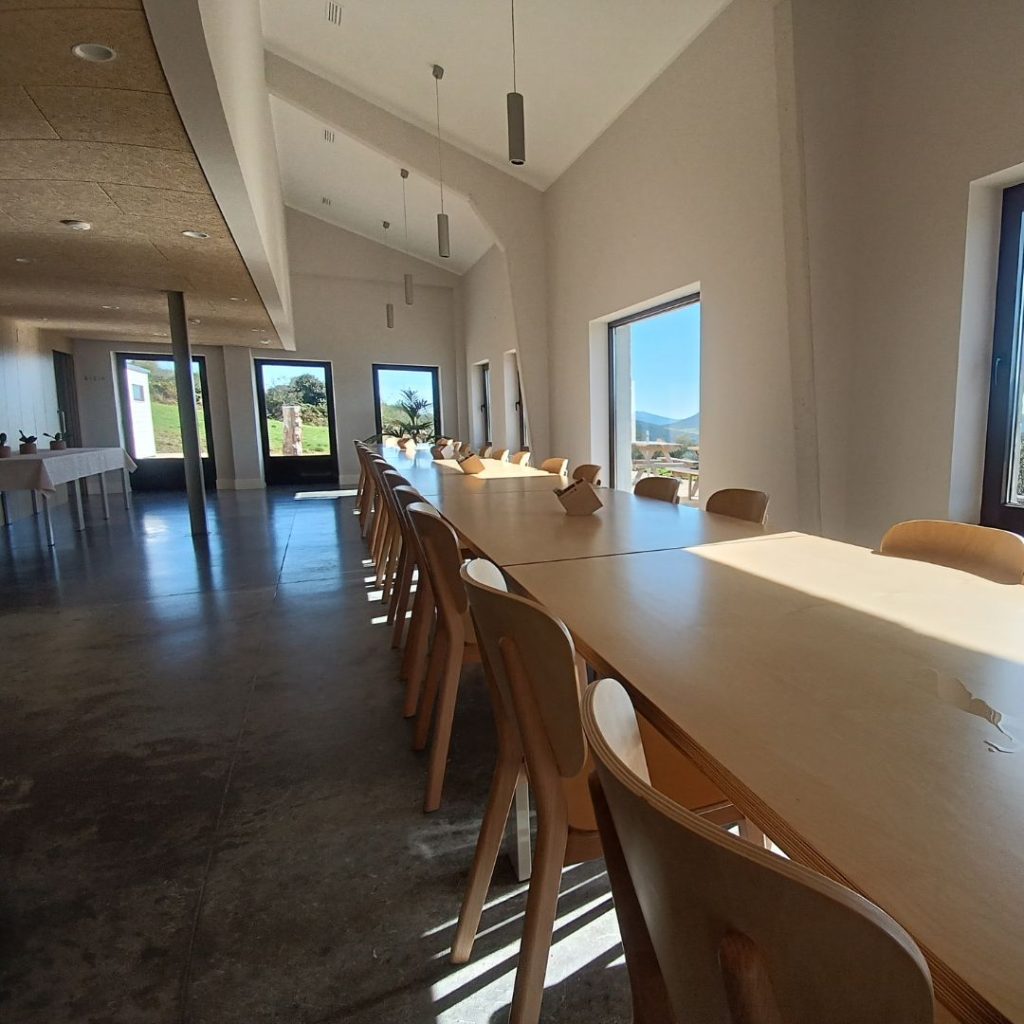 Przyznam, ze tutejsze kulinaria to nie moje smaki. Caldo gaelige to zupa na wodzie z ziemniakami, kapustą, czasem oliwą z oliwek, czasem z fasolą. Na drugie przynoszą nam do stolików kotlet z cielęciny i trzy plastry pomidora. Dobre tak na 6/10, ale sycące, a po wysiłku naprawdę jak nagroda. Na stolikach do dyspozycji oliwa z oliwek, pieprz i sól – z tym daje radę! Deser oddaję koleżance. Humor poprawia cała butelka wina i przede wszystkim najlepsze towarzystwo pielgrzymów! Zaprawieni ruszamy w dalszą drogę. Długi czas idziemy razem, rozmawiamy, nie raz płynie mi łza wzruszenia, ludzie dzielą się swoim sercem, doświadczeniem chorób i śmierci bliskich, wdzięcznością za życie, za tu i teraz.