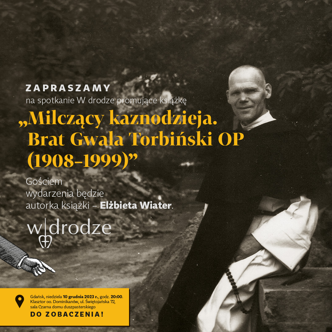 W niedzielę 10 grudnia 2023 r. o godz. 20:00 w klasztorze oo. Dominikanów w Gdańsku (ul. Świętojańska 72, sala Czarna domu duszpasterskiego) odbędzie się spotkanie z Elżbietą Wiater – autorką książki „Milczący kaznodzieja. Brat Gwala Torbiński OP (1908–1999)”.